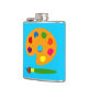 This fun and colorful art palette illustration features an artist's palette and paint brush with bright colored paint in purple, yellow, orange, pink, red, green and blue! This artistic painting design is the perfect gift to buy for a painter!