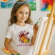 Here is a cute "Artist in Training" tee for girls. The pink background is pretty, and the paint set is a nice touch. She can wear this shirt for crafts and beyond. Personalize this tee with your own words.