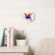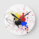 Paint Splatter Art Black Blue Red Yellow Round Clock