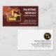 Cover features a reddish grunge wall that is splattered with paint. Here lies a gold home brush logo you can use. At the upper right corner is the business name "PAINTING SERVICE" and your prestigious name. Contact details are near the base of the card.
