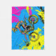 A young motocross rider is flying high amidst colourful paint splatters. Great for Kids and Sports people of all ages.