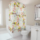 * Red, black, yellow and gray colors of paint splatter, drips and drops cover this shower curtain.
