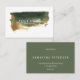 A modern business card featuring a bold olive green and gold watercolor brushstroke on a clean white background. The front showcases your name and profession in crisp white sans-serif text, centered over the artistic paint effect for a creative yet professional look. The reverse side is a solid olive green with your name, role, email, phone number, and website presented in minimalist white type. This card is ideal for designers, creatives, consultants, or anyone seeking a fresh, contemporary brand identity.