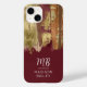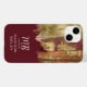 Whimsical Abstract Gold Red and Bronze Paint Strokes iPhone 14 Case with a white custom monogram template. For an added personal touch include your first and last name to the template. Give a thoughtful personalized iPhone case as a gift for Mother’s Day, birthday, graduation, etc. Personalised Monogram Initial Letter iPhone Cover with geometric elements.