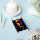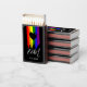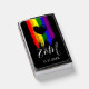 Monogrammed lgbt wedding matches with rainbow pride flag drawn with messy strokes and adorned with a black heart against a black background. Add your initials and wedding date.