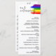 Charming lgbt wedding program with rainbow pride flag drawn with messy strokes against a white background. Gay wedding program in white with rainbow brush strokes. Lesbian wedding program with rainbow colored brushstrokes.
