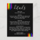 LGBT wedding details enclosure card with rainbow pride flag drawn with messy strokes against a black background.