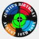 Paintball Birthday party yard sign. Fun colorful template with paint splatter. Round shape with target.