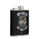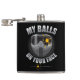 Well made flask, a little better than I had expected. Flask came in clear plastic box which gave it a nice presentation when I took it out of the zazzle packaging. Image is not printed on flask but on sticker. Don't know how this will hold up I haven't used it yet. This would make a Great gift! I plan to purchase more for friends! Cheers. I thought a little brighter than computer. Very crisp, writing wasn't