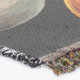 A quality printed throw has its advantages. This is a much finer weave throw than its loopier cousins, and though lighter, it is worth the investment for custom room accessorizing. The back is much prettier than the typical brown, and the fringe on the long sides very vivid, the selvage nicely done. Before photographing, I washed the throw in cold water, delicate, with a thicker woven throw the same size. On tumble dry low, this throw was dry in half the time as the other. This is a very practical quality if you use throws for furniture covers or to wrap up in frequently. The sleekness of the fabric makes it a great layer for accenting or protecting without the feeling of sitting on too much stuff. Perfect for napping or when you feel a light chill coming on. The color printing is beautiful and on this fabric, matched the design and color of my Photoshop image. This is an advantage for blending room fabrics and colors. The fringe on the short sides prints the colors from the design image and therefore varies from the side fringe. I streaked a white fractal line through the plaid pattern to give the illusion of weaving. This printed as crisp as an illusory thread, and put some white in the short side fringe, showing another advantage of print vs loomed- for artistic purposes, line lines, detail, and color integrity can be planned and preserved. My loomed throws have color limitations and more of a needlepoint texture. Print throws reproduce an exact image. The throw felt a little stiff straight out of the package, but this went away in the first delicate wash. Of course I searched the wash water for ink or bleeding and there was none.