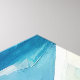 A painted abstract artwork in shades of blue and orange