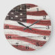 Painted American Flag on Rustic Wood Texture Large Clock