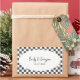 Decorate wedding party favors with these personalized stickers. They feature your names and your wedding date in black lettering in a white oval frame that's set against a painted checkerboard pattern of painted black squares and plain white squares.