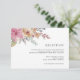 Elegant floral wedding reception card in muted tones of pink, peach and sage greens features a watercolor floral peony bouquet at the upper left corner, with your reception details in classic off black lettering. Personalize with your wedding reception details including timing, venue, address and any additional information like transportation or parking.
