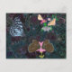 Paintings of colorful butterflies have been added to a background of abstract flowers. The design is printed on postcards.