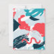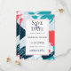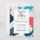 Modern abstract paint strokes in brilliant Caribbean coral, turquoise, and blue, wedding save the date card. Personalize text font style, color, and size.