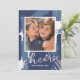 Spread cheer in the New Year with this modern holiday photo card featuring "cheers" in hand drawn script on an abstract painted background in faux silver foil and shades of blue. Photography © Storytree Studios, Stanford, CA
