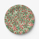 Painted Christmas Retro Floral Pattern Red Green Paper Plates