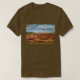 Vintage Painted Desert image of Arizona shows colors of grays, reds, oranges, yellows and pink visible for miles across the desert landscape. Reprinted on this men's shirt.