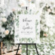 simple lettering script and painted watercolor eucalyptus greenery bridal shower welcome sign. The text and colors on this sign poster can be edited.