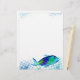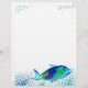 Happy fresh seafood fish letterhead stationery for menus, cooking class schedules, recipes and more for bay area or coastal personal or private chefs, caterer or catering, and other fresh, healthy food, cooking, or culinary business or fishing fans. Fish is colorful blue and green tones in a pop art dotted sea.