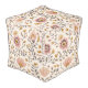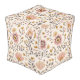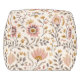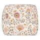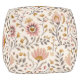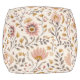 This pouf features a fun and charming painted floral pattern in shades of golden yellow, pinks, grays and cream. Great for a children's bedroom or playroom, or anywhere you want to add a playful touch of whimsy.