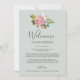 These painted floral wedding welcome letter & itinerary cards are perfect for a modern wedding. The elegant and romantic design features beautiful painted acrylic flowers in blush pink and grey, with pops of colorful blue and orange. The front of the card features a welcome letter and the back of the card features the wedding itinerary. These notes are perfect for destination weddings and hotel guest welcome bags.