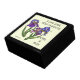 Pretty decorative floral keepsake box with tile (purple iris on pale yellow background) with scripture verse from Romans 12:12