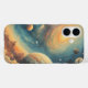Embark on a celestial journey with this vibrant, vintage-style space art! This phone case captures a breathtaking view of a distant galaxy, featuring prominent planets and moons set against a swirling nebula of gold, deep blue, and amber tones. The aesthetic is reminiscent of classic oil-painted sci-fi book covers, complete with dynamic clouds and twinkling starlight. This is the perfect statement piece for dreamers and anyone who loves the magnificent beauty of the universe.