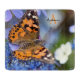 Photograph of a Painted Lady butterfly on a blue hydrangea.
