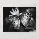 A black and white photograph on a postcard of Painted Lady Butterfly.
