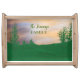 Stylish and trendy painted landscape setting serving tray that can be personalized.