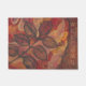 A welcome doormat with painted leaves in beautiful autumn colors of red, brown, yellow, orange, and cream.
