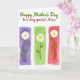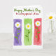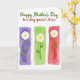 This greeting card features a bright floral layout on a white background that feels friendly and affectionate ❤️. Near the top, the main line of text reads “Happy Mother’s Day” in green, centered and slightly larger than the rest. Just beneath it, a second line says “to a very special Niece” in deep red, also centered, adding a cozy, close-to-you touch through the warm color choice. Below the wording, three tall, narrow panels sit side by side like a small gallery, inviting the eye to linger the way you might pause over a shared memory. Each panel shows a white daisy-like flower with a sunny yellow center and soft petals that seem to lean gently forward, as if in a quiet, caring gesture 🌼. Thin green stems and a few small leaves rise from the bottom of each panel, keeping the look light and airy. The left panel has a lavender wash, the middle shifts to lime green, and the right glows with a rosy red background, all with softly uneven, painted-looking edges.