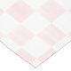 This table runner has a large scale pink and white checkerboard print with a country style. The pastel pink squares have a painted look for a soft, delicate style.