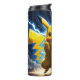 Pikachu in an epic battle with lightning on a thermal mug.
