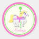 Painted Pony Pink and Green Carousel Classic Round Sticker