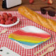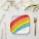 Primary colored painted rainbow party plate for a baby shower or birthday.
