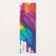 Vibrant Rainbow Paint Drip Yoga Mat with a personalized name template in a purple calligraphy font.