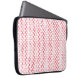 Keep your laptop safe in a stylish case featuring a repeating reproduction of a hand-painted red geometric pattern.