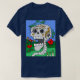 Celebrate the Mexican Day of the Dead with this illustration of a painted skill with gravestones, marigolds, and candles.
