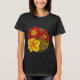 Painted red, green, and yellow spring floral fine art ladies t-shirt. This stunning primrose is painted on coloured board in gouache by Sarah Trett. www.sarahtrett.com