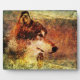 A colorful 8 x 10 richly printed decorative plague with easel for your home or office with a colorful image of a Timber Wolf..