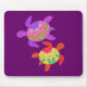 A pair of digitally painted sea turtles. One is dark red and the other is purple, and each has a patterned shell to match. Beautiful sea turtle art in a simple, colorful pattern.