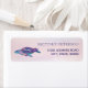 Multi-colored painted whale and calf on this baby shower return address label with a watercolor background.