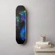 Bright blue body with colorful feathers against black creates a single funky bird.