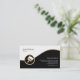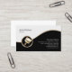 This painter business card features black and white segments separated by a wavy gold strip. An elegant gold icon of a paint brush lies on the lower left side of the design, that's generally suitable for businesses or professions related to construction, contractor, home repair, repairs, handyman, skilled worker, skilled labour, trade skills themes.