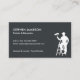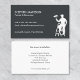 A business card for the painting and decorating industry. With a charcoal grey background on the front and a silhouette of a painter on steps holding a paint roller, easily customize the white typography with your name and contact details. The reverse of the card has a plain white background where you can list out the services that you offer.