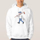 This design is a good one for any painter as it is of a painter on his way to work. This painter is carrying a tin of paint and has a paint roller over one shoulder. He is wearing a cap and looks like he is off to a job. This painter looks great on this mens hoodie. Perfect for yourself or as a gift