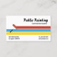 Business card design for painters showing a paint roller and three lines of different colors. Font style, color and size can be personalized. A logo can be uploaded and added to the design. The business card is ideal for painters, handyman or renovation specialists.